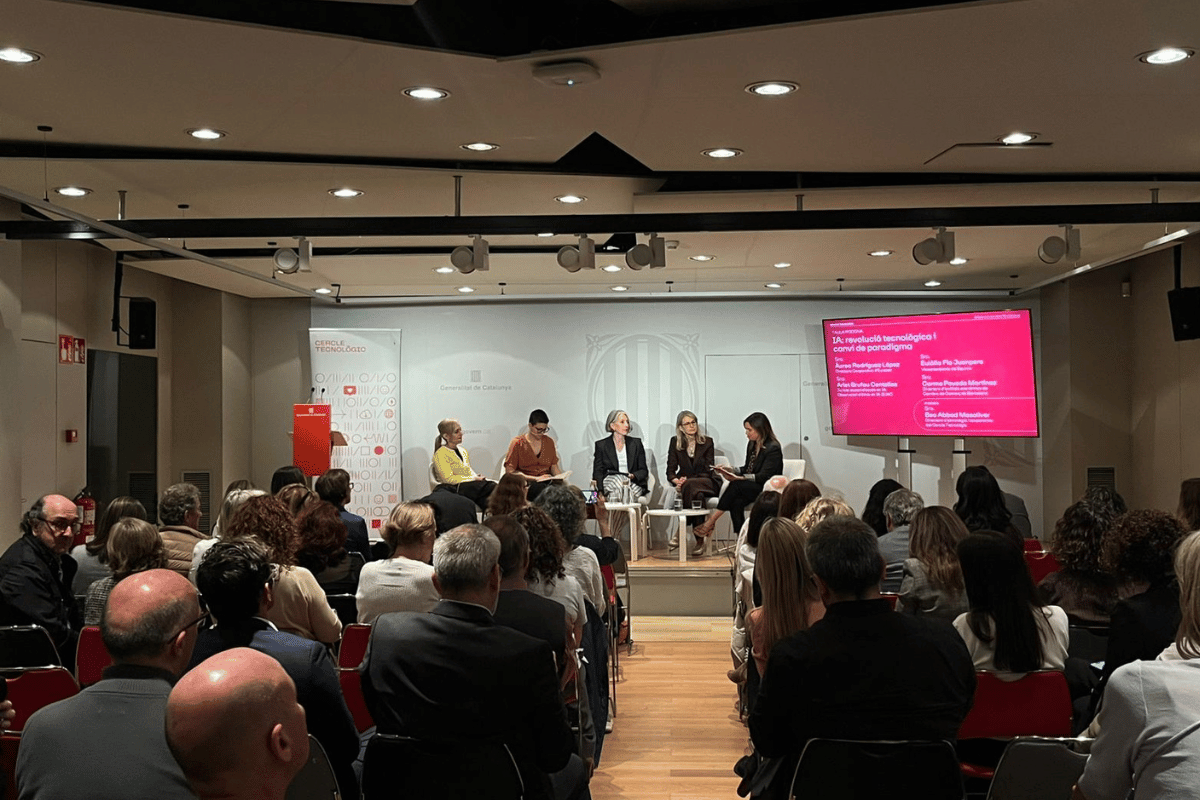 La jornada va culminar amb una taula rodona centrada en l’impacte de la intel·ligència artificial, moderada per Bea Abbad Masoliver i amb la participació d’Àurea Rodríguez (Eurecat), Arlet Brufau (Observatori d’ètica en IA), Eulàlia Flo (Equinix) i Carme Poveda (Cambra de Comerç de Barcelona).